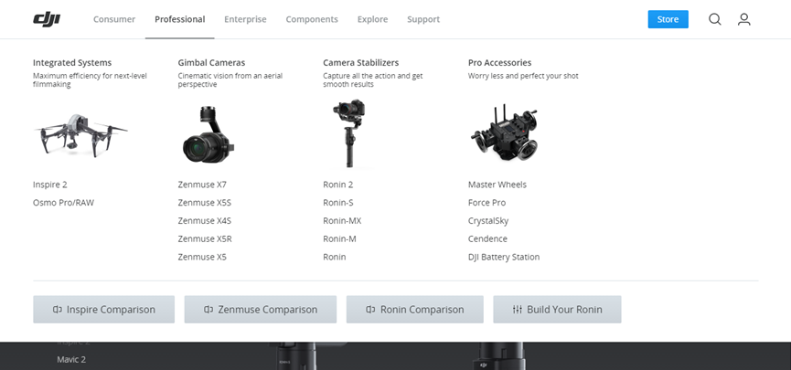 以下面的產(chǎn)品型網(wǎng)站為例,導航欄上不僅對產(chǎn)品進行了分類,而且鼠標展開之后,不僅加入了具體產(chǎn)品的圖片,對每一款產(chǎn)品的特性也做了簡單的介紹,既節(jié)約了用戶的時間,也有效的提升了用戶的體驗度。